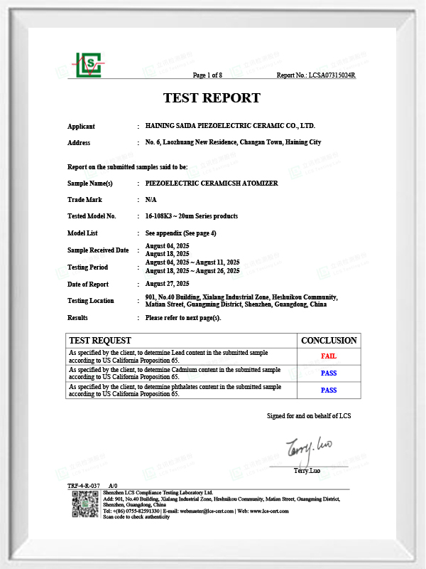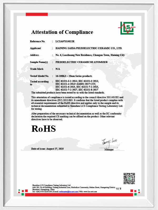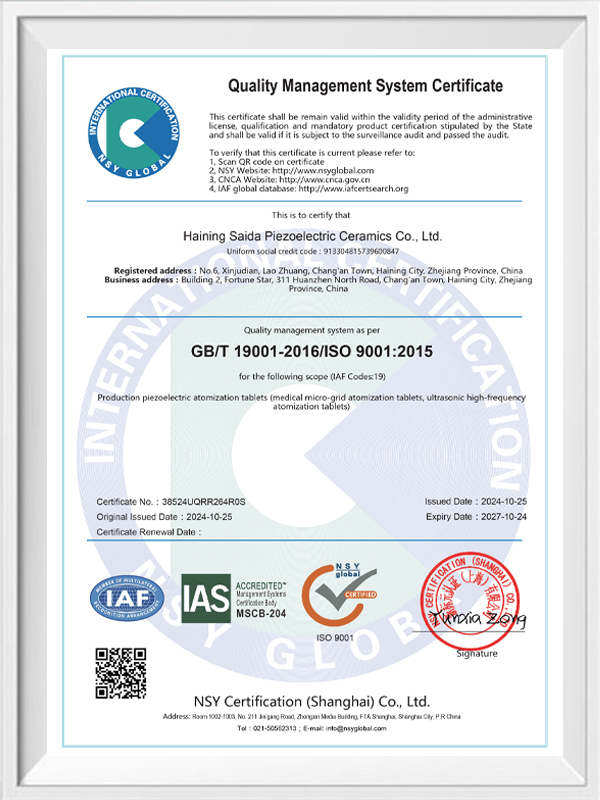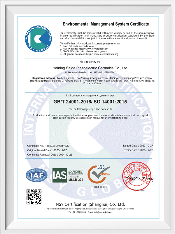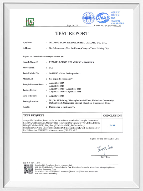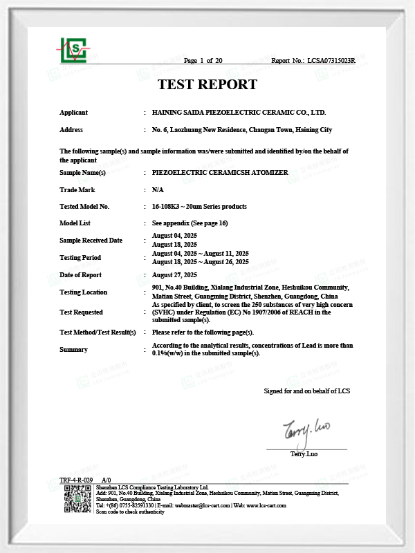 Az ólommentes piezoelektromos kerámia a piezoelektromos ipar „gyöngyszemeként” ismert, a jövőben fokozatosan minden tekintetben felváltja az ólomalapú piezoelektromos kerámiát, amely már ugyanolyan piezoelektromos teljesítménnyel rendelkezik, és az ólomalapú piezoelektromos lemezt. Teljesen nem mérgező, ártalmatlan, biztonságos és környezetbarát, nem tartalmaz ólmot, antimont és más nehézfémeket és egyéb Rohs-korlátozott elemeket, magas Curie hőmérséklet Tc-328 °C, nagyon alacsony elektromos veszteség TangentLoss Ezért az ólommentes piezoelektromos orvosi porlasztó chip nagy kereskedelmi értékkel és egyetemes értékkel rendelkezik, a valóban nem mérgező és környezetbarát, ólommentes piezoelektromos kerámia a nem szennyező, az ólomalapú kerámiával arányos piezoelektromos teljesítmény mellett népszerű környezetbarát piezoelektromos kerámiává válik. Évekig tartó kutatás és fejlesztés, folyamatos tesztelés és kísérletezés után a vállalatnak sikerült elkészítenie az ólommentes orvosi porlasztó chipet, hogy az ólomalapú porlasztó chippel azonos mennyiségű porlasztást és azonos átmérőjű részecskekövetelményeket érjen el. Ólommentes orvosi Mesh porlasztó chip, biztosan ragyogni fog, és sokféle felhasználási forgatókönyvet kap.